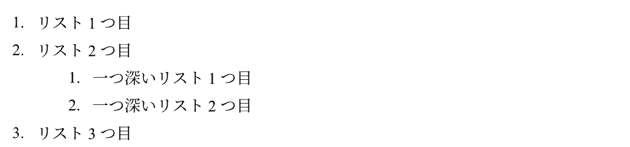 で番号付きリストとなります.- プラスの後に半角スペースを設けないと,そのままプラスが表示されます.