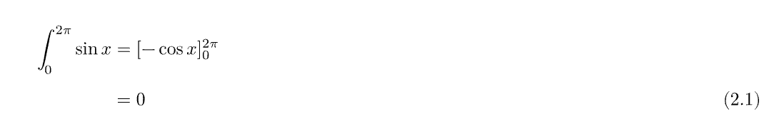 integral_0^(2pi) sin x &= [- cos x]_0^(2pi)#nonumber\