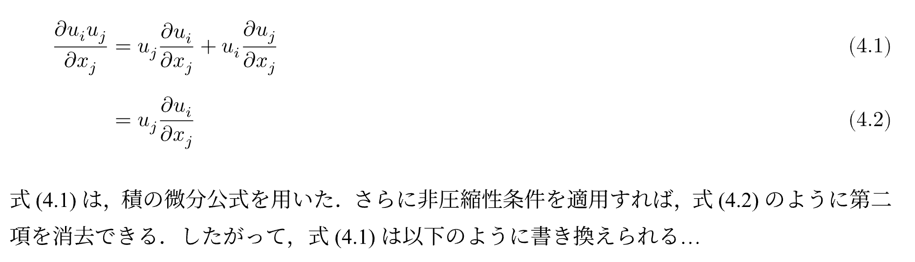 さらに非圧縮性条件を適用すれば,@eq:incompressible-product-rule のように第二項を消去できる.